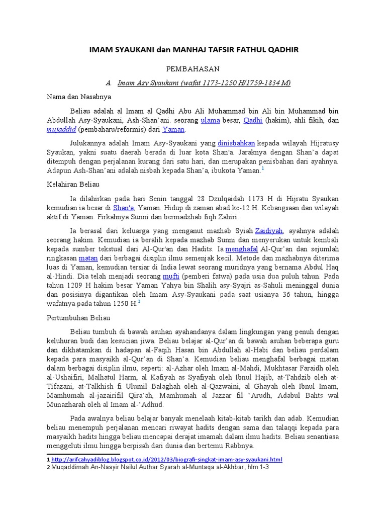 DOC) BIOGRAFI SINGKAT IMAM ASY-SYAUKANI | Damara Firdaus - Academia.edu