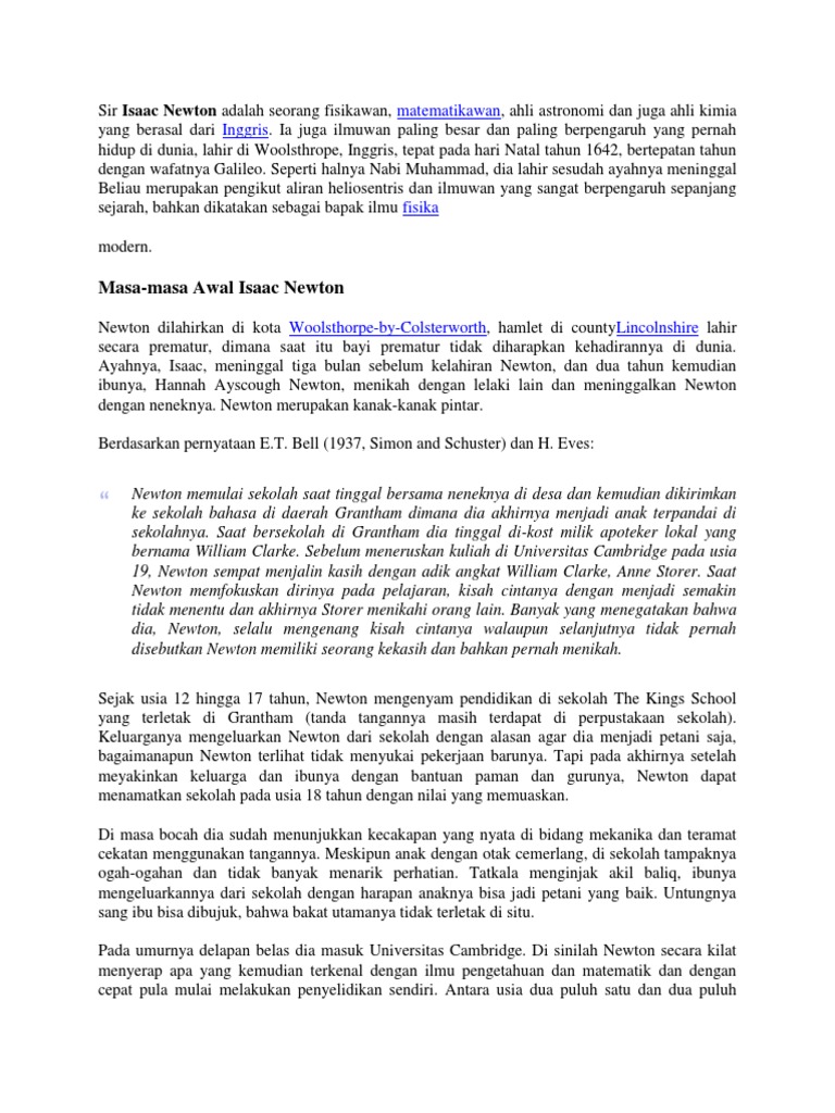 DOC) BIOGRAFI SIR ISAAC NEWTON | noer cholis - Academia.edu