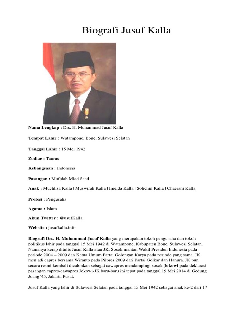 Biografi Jusuf Kalla, Dari Pengusaha Sampai Wakil Presiden - Biografi.co.id | Biografi Tokoh Indonesia dan Dunia