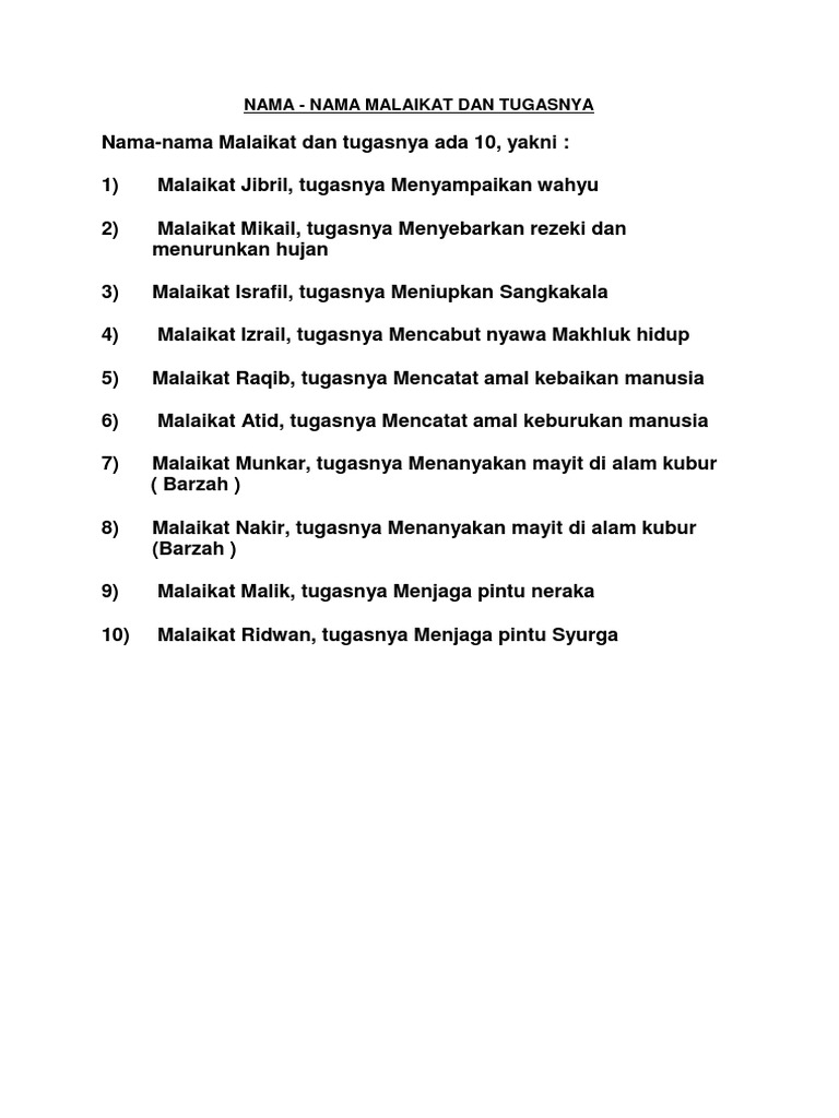 Sebutkan 10 malaikat dan tugas malaikat - Brainly.co.id