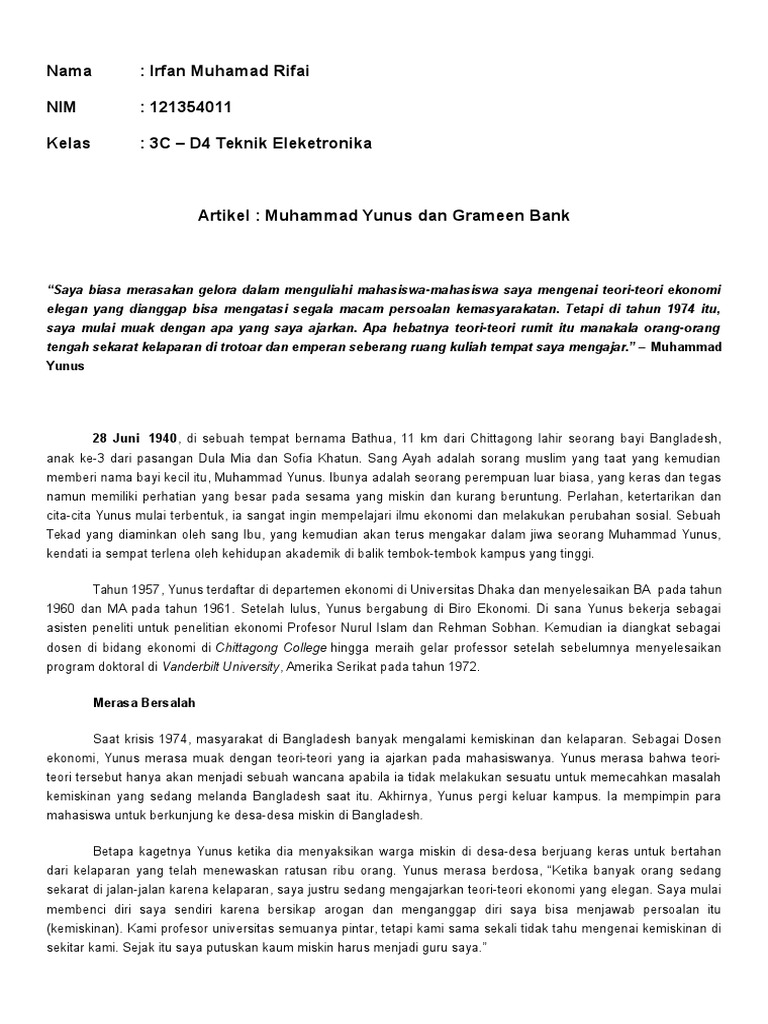 Muhammad Yunus Dan Grameen Bank