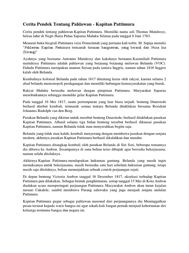 Cerita Pendek Tentang Pahlawan - Kapitan Pattimura