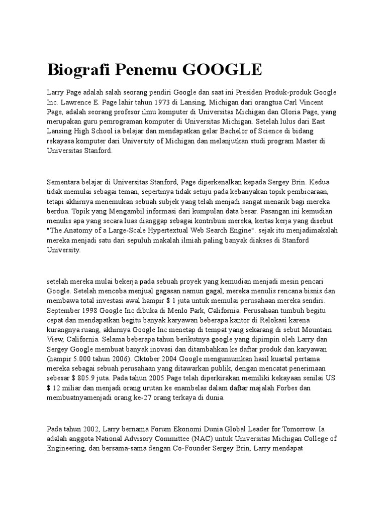 biografi penemu google dalam bahasa inggris | TutorialBahasaInggris.Co.Id