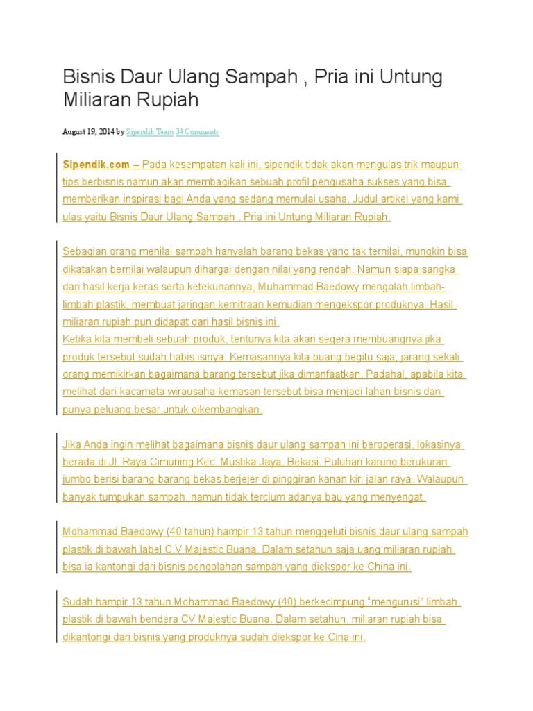 5 Pengusaha Limbah Sampah Yang Sukses - Cara Bisnis Online