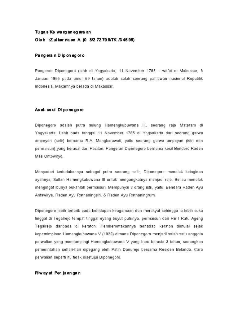 DOC) Biografi Pangeran Diponegoro | arya syafin - Academia.edu