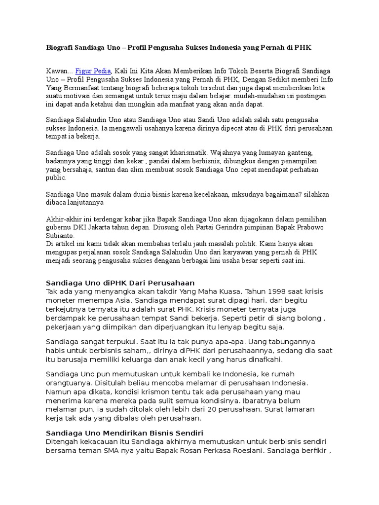 Biografi Sandiaga Uno — Pengusaha Sukses Indonesia | by Chairani Siregar | Medium