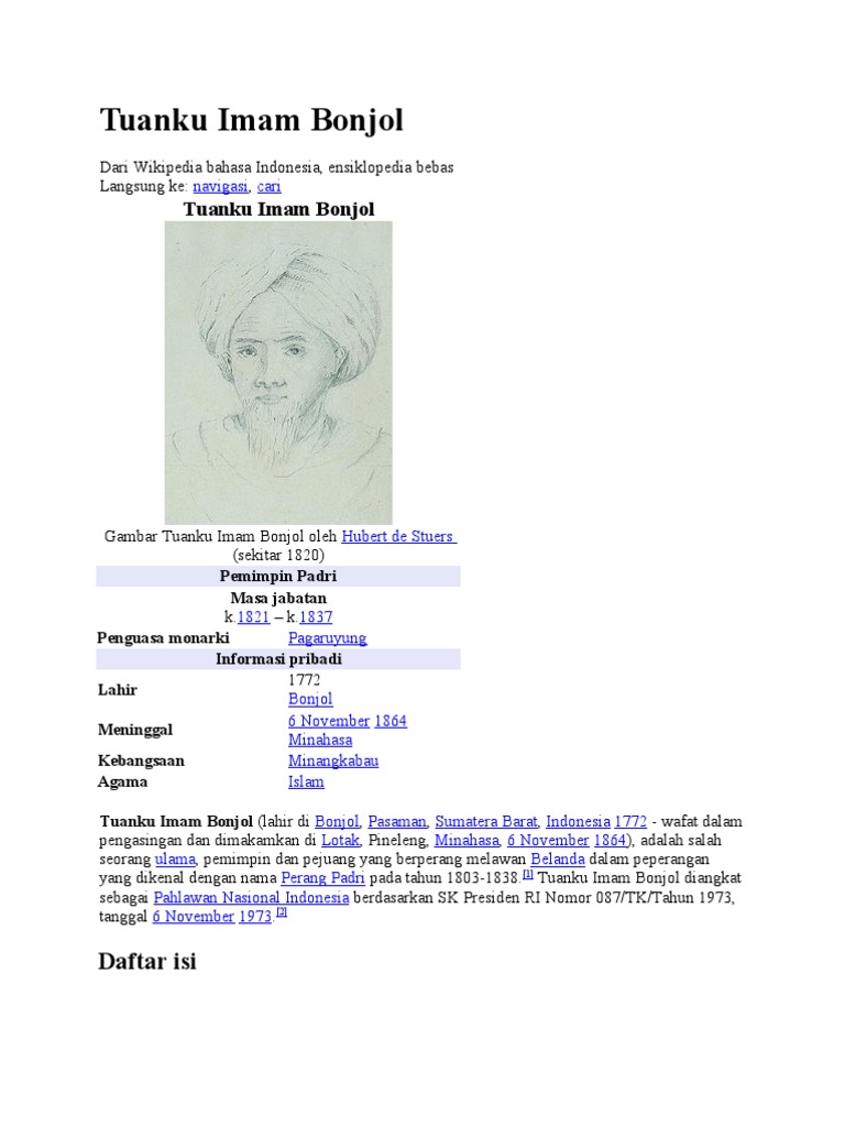 TUANKU IMAM BONDJOL.docx - TUANKU IMAM BONDJOL PAHLAWAN NASIONAL Nama Lengkap Tuanku Imam Bondjol Agama Islam Tempat Lahir Bonjol Pasaman Sumatera Barat | Course Hero