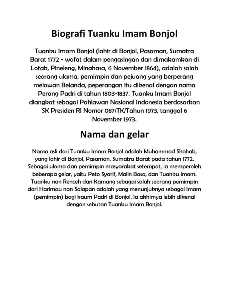Biodata Pahlawan Indonesia - Tuanku Imam Bonjol - Wattpad