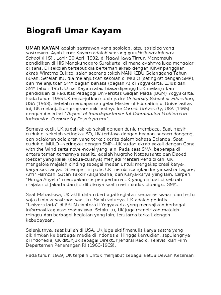 Biografi Umar Kayam. Umar Kayam lahir di Ngawi, Jawa Timur, 30 April 1932 dan meninggal di - PDF Download Gratis