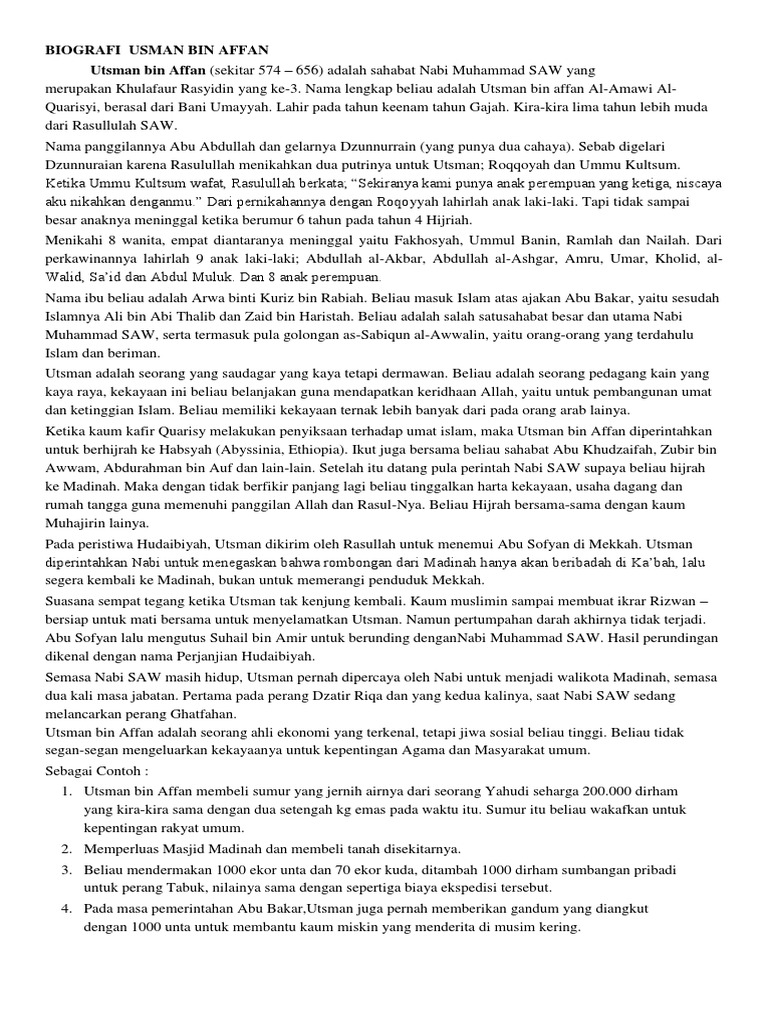 DOC) BIOGRAFI USTMAN BIN AFFAN | mardalena 68 - Academia.edu