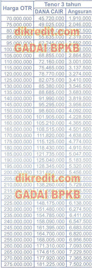 Terjual TABEL ANGSURAN KREDIT DANA TUNAI JAMINAN BPKB MOTOR DAN MOBIL. TERBARU | KASKUS