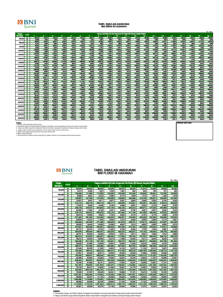Tabel Angsuran KPR Bank BNI Syariah November 2020 Dunia Perbankan