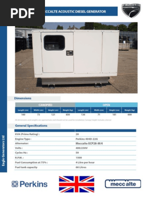 20 Kva Perkins Meccalte Acoustic Diesel Generator: Dimensions | Diesel Engine | Manufactured Goods