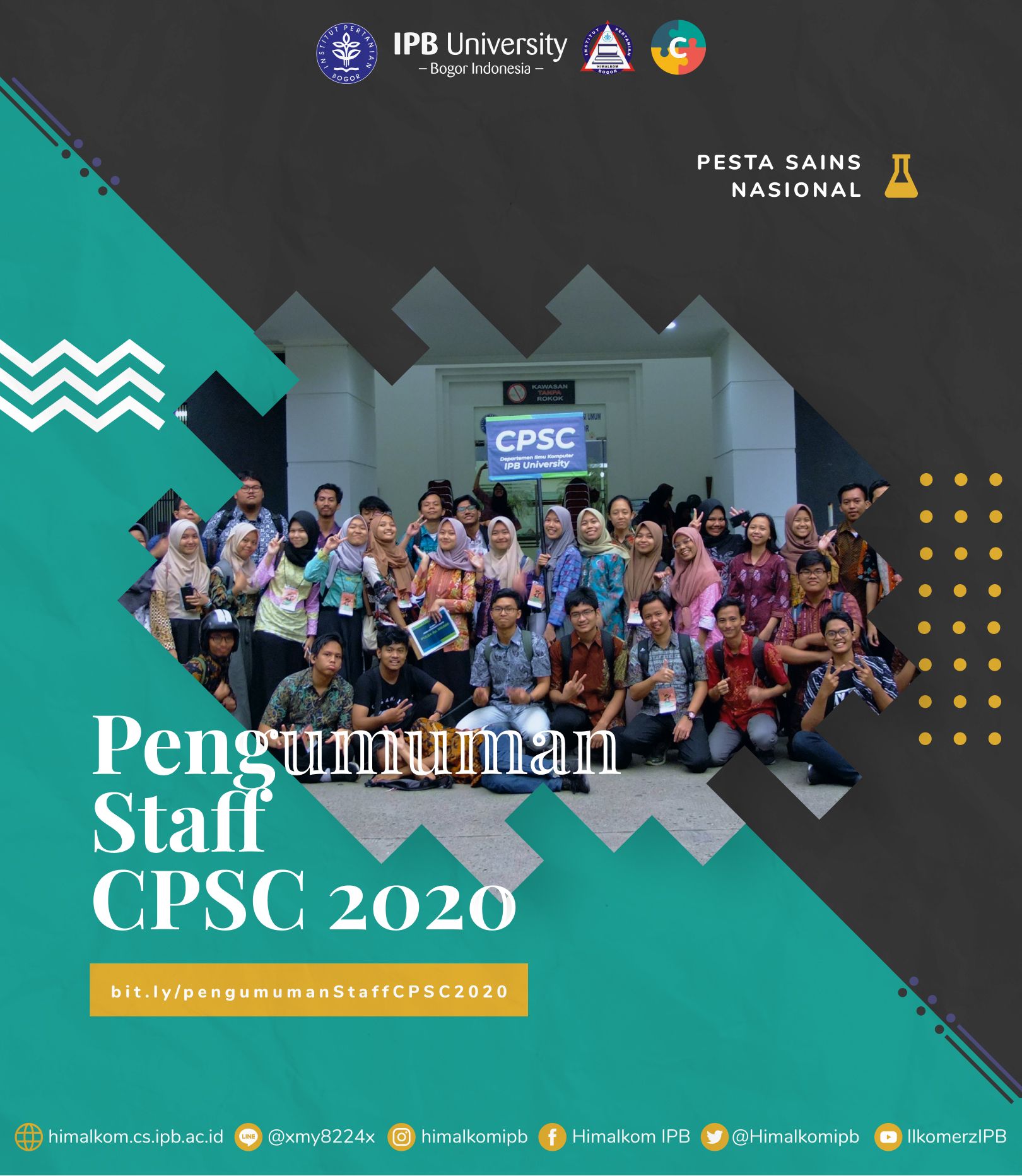 Himalkom IPB on Twitter: “[PENGUMUMAN STAFF CPSC 2020] Halo, Ilkomerz! Terima kasih kepada Ilkomerz angkatan 55 dan 56 yang telah mendaftar Staff CPSC 2020. Berikut kami umumkan nama nama yang terpilih menjadi
