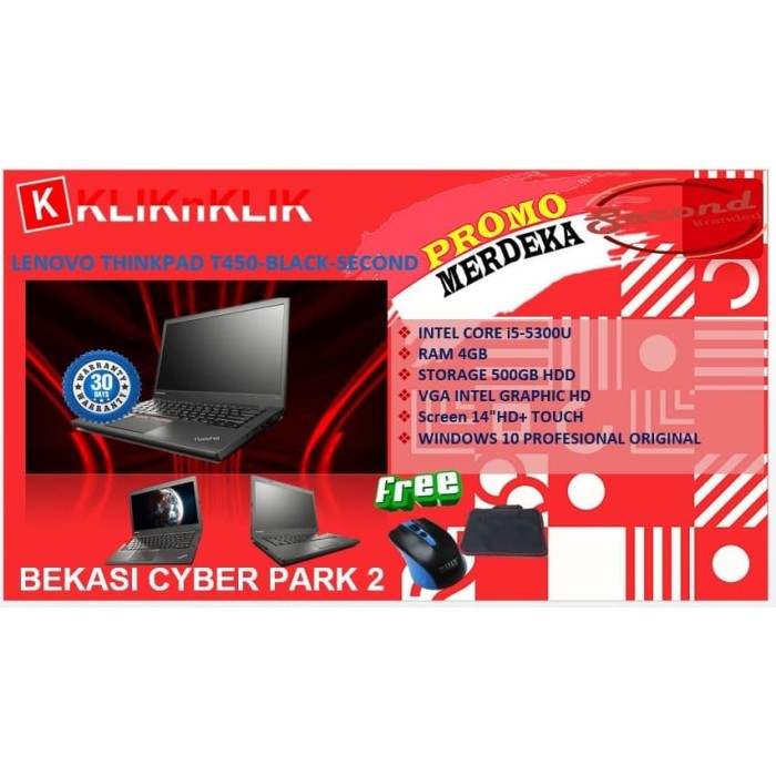 Jual LENOVO THINKPAD T450-i5-5300U-4GB-500GB-14 HD PLUS-TOUCH-WIN10PRO-BLAC - Kota Bekasi - kliknklik cempaka | Tokopedia