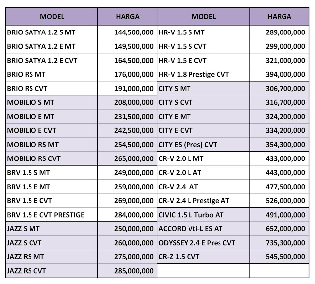 Harga mobil Honda Makassar Januari 2016 - RODA2MAKASSAR