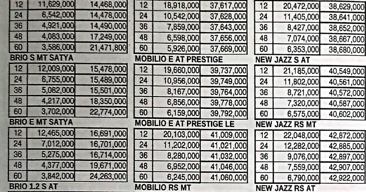 Brosur Daftar Harga Angsuran cicilan paket kredit tunai cash dealer mobil honda pekanbaru showroom brio mobilio jazz HRV BRV CRV DP ringan bunga rendah | 0853-55-386-777 | Promo Mobil Honda Pekanbaru |