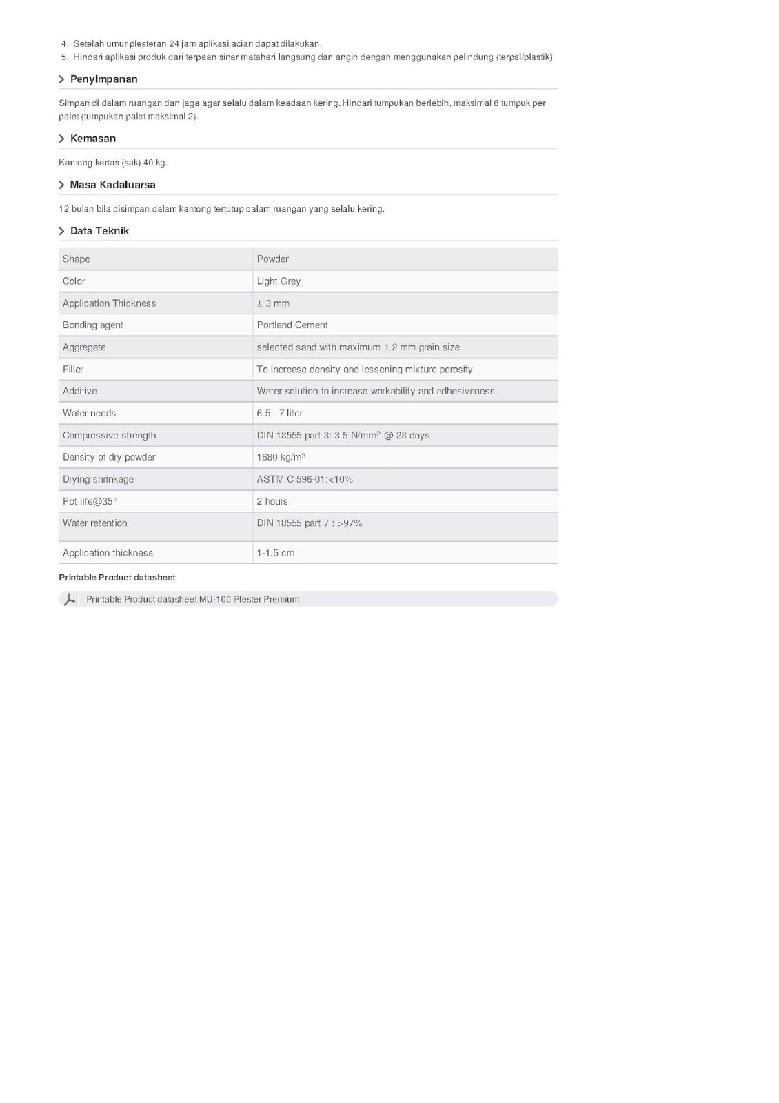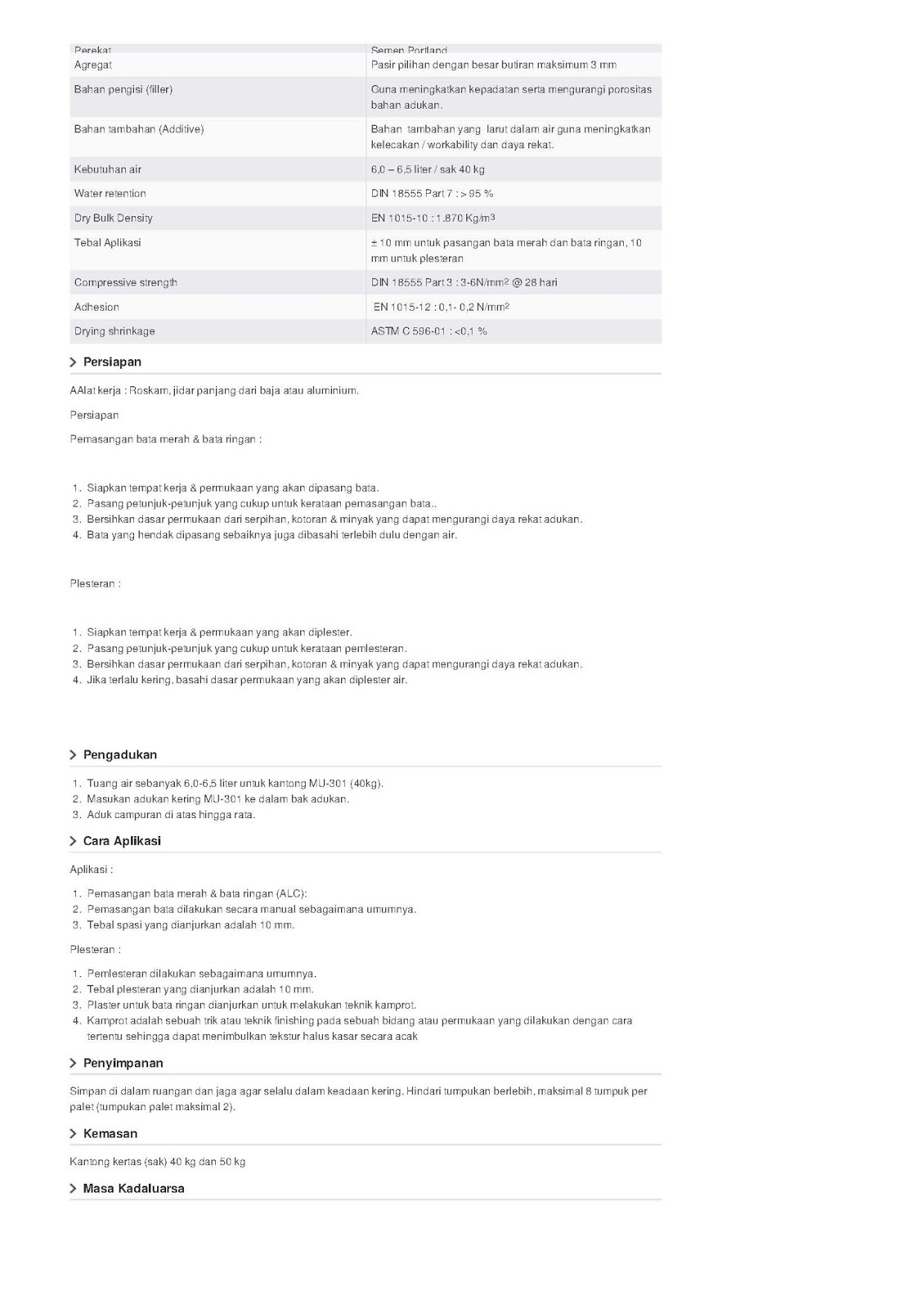 Jual Semen Instan Mortar di Pasuruan Perekat bata ringan | Keramik | Plesteran | Acian: Brosur Semen Instan MU-Mortar Utama