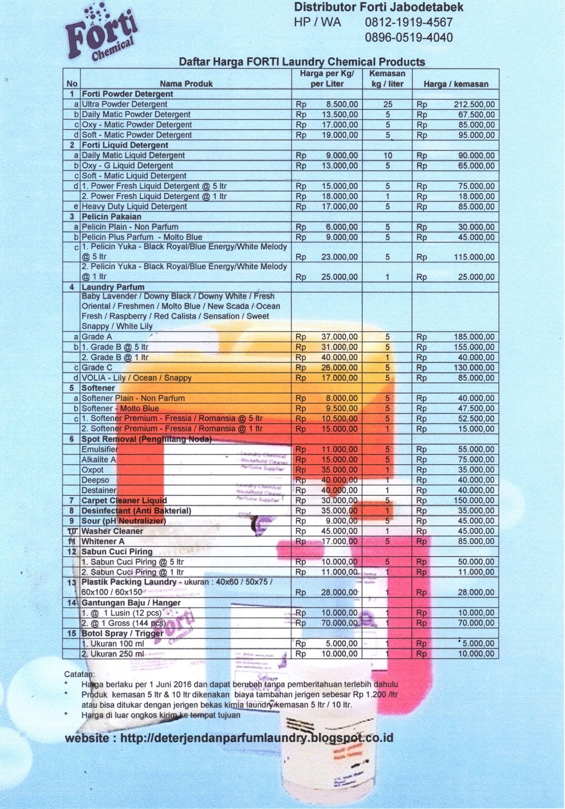 FORTI DETERJEN DAN PARFUM LAUNDRY: DAFTAR HARGA / PRICE LIST PRODUK DETERJEN, PARFUM LAUNDRY FORTI DLL