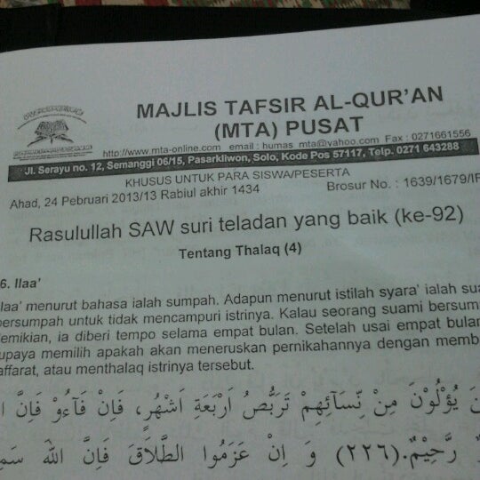 Majlis Tafsir Al Qur’an, jl.ronggowarsito no 111,surakarta, Surakarta (2020)