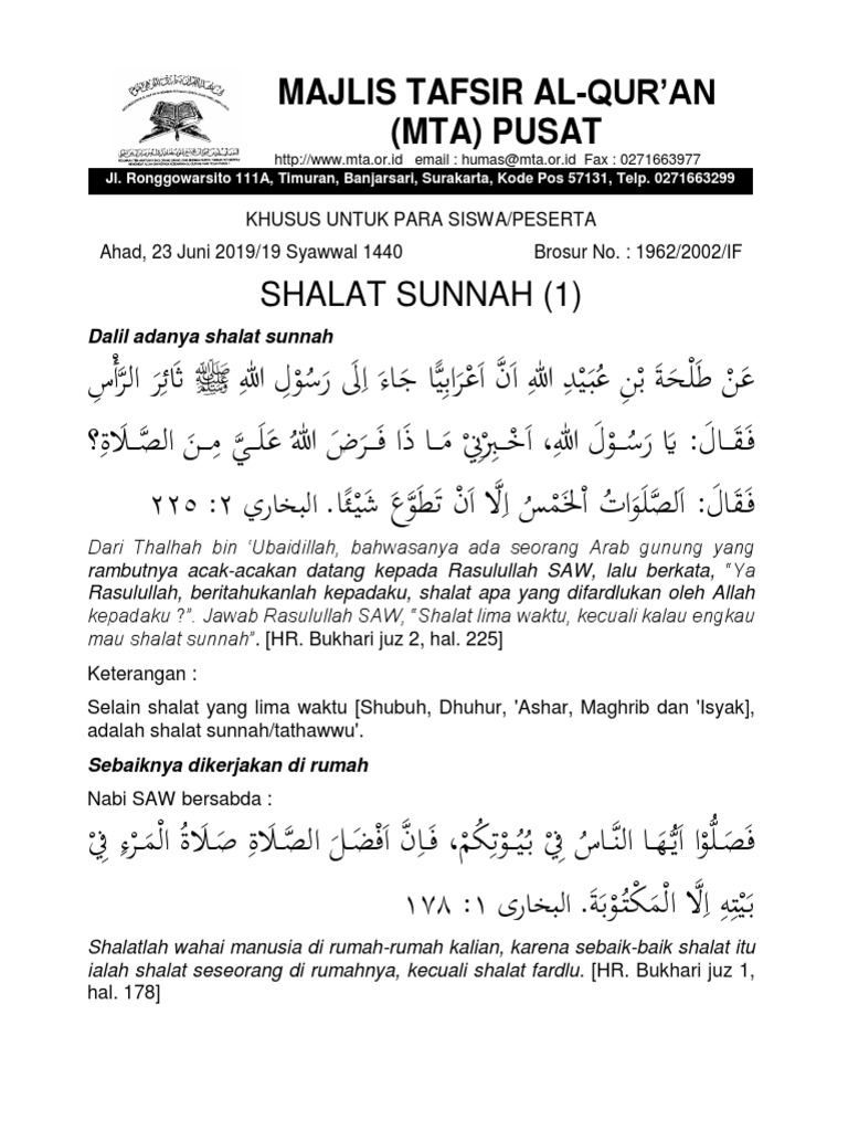 Jual Buku Solat MTA - Jakarta Utara - Toko Persada Fm | Tokopedia