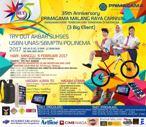 Event Malang on Twitter: ““35th Anniversary Primagama Malang Raya Carnival” | 5, 26 Feb, 12 Maret 2017 | Info: 085731741421 https://t.co/hXv7ofKF4x”