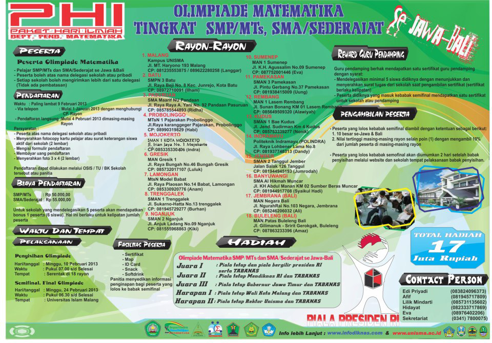 UMATH 19: INFO OLIMPIADE MATEMATIKA SE-JAWA BALI OLEH DEPARTEMEN MATEMATIKA UNISMA Malang