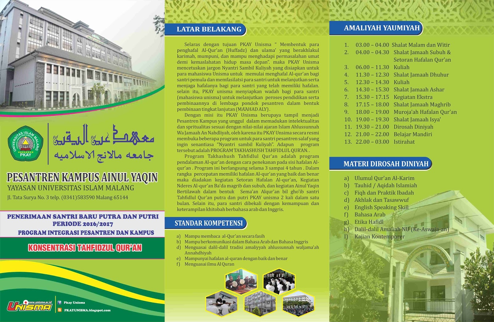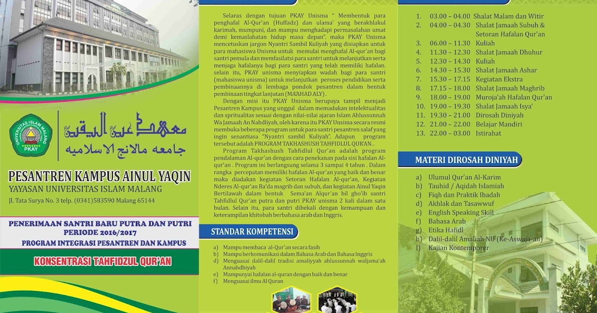 PESANTREN KAMPUS “AINUL YAQIN” UNISMA: BROSUR PESANTREN KAMPUS AINUL YAQIN KONSENTRASI TAHFIDHUL QUR’AN TH 2016