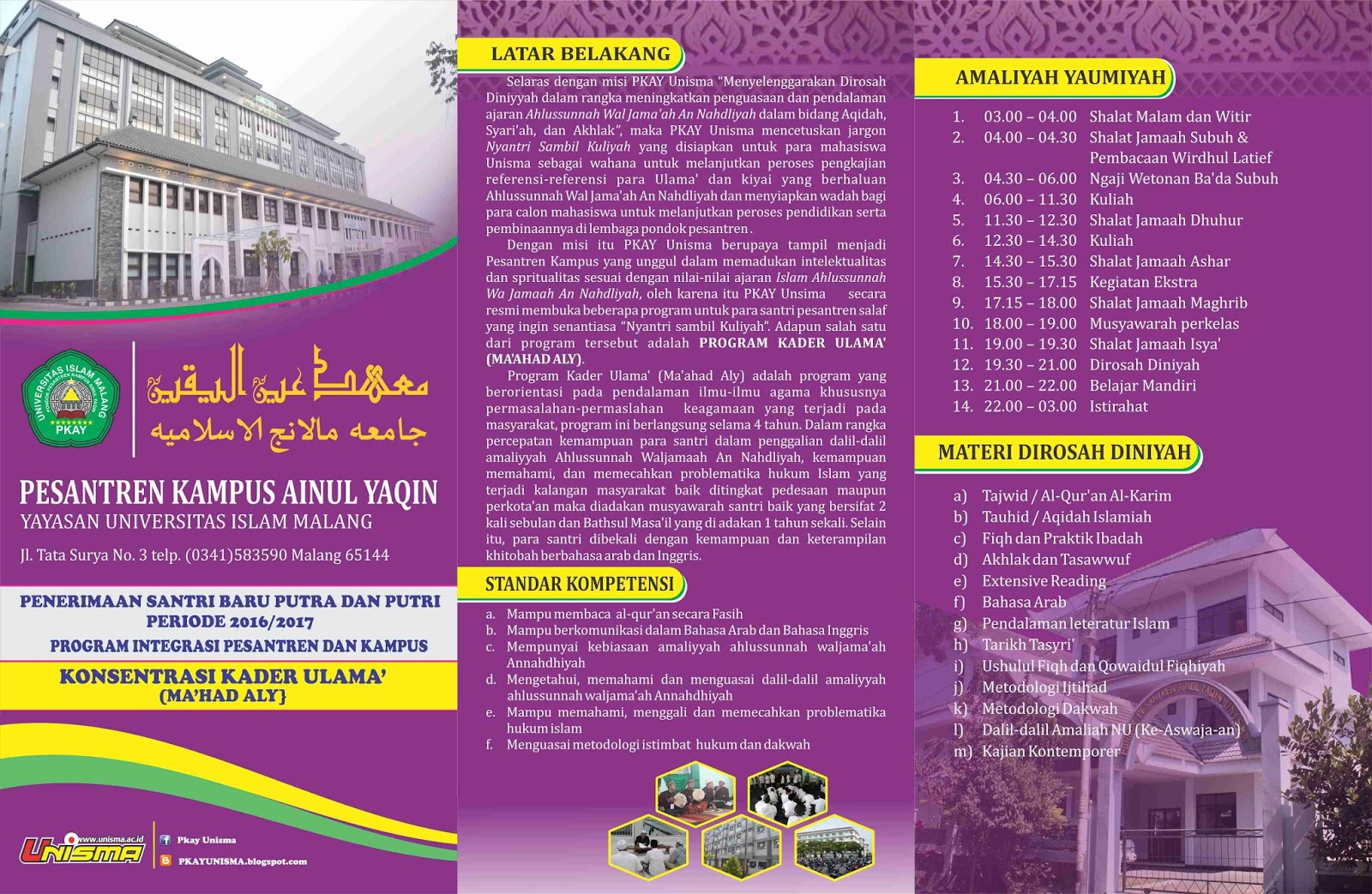PESANTREN KAMPUS “AINUL YAQIN” UNISMA: BROSUR PESANTREN KAMPUS AINUL YAQIN KONSENTRASI MA’HAD ‘ALY (KADER ULAMA’) TH 2016