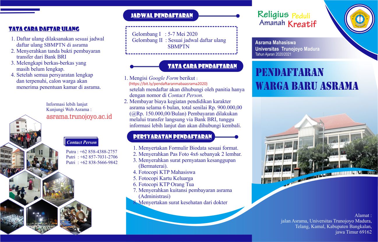 Update 2020] Tata Cara, Syarat, dan Jadwal Pendaftaran Asrama Mahasiswa Universitas Trunojoyo Madura (UTM) - Mas Amin Nasir