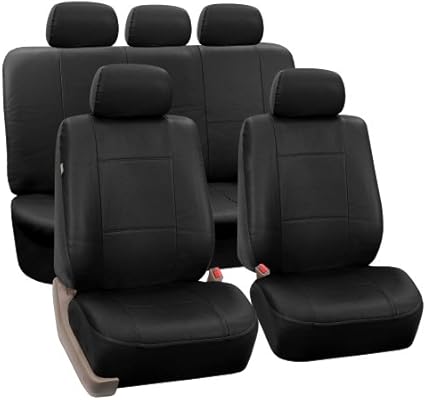 FH Group PU002BLACK115 Black Faux Leather Seat Cover (Full Set …