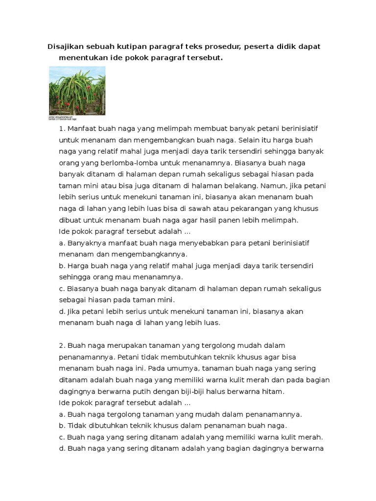 Struktur Teks Dan Ide Pokok Cara Menanam Buah Naga Yang Baik Dan Benar