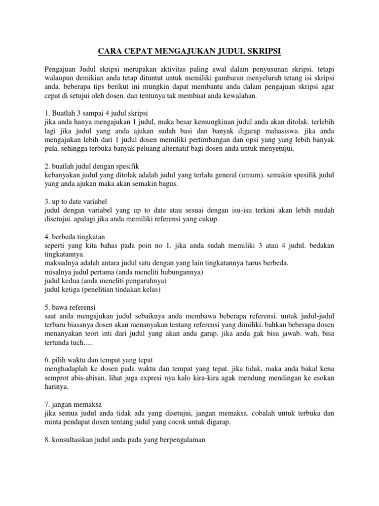 Cara Mengajukan Judul Skripsi Ke Dosen Pembimbing - Kumpulan Berbagai Skripsi