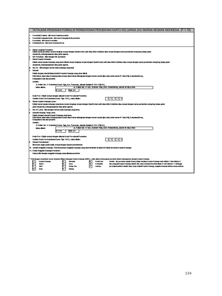 FORMULIR PERMOHONAN PERUBAHAN KARTU KELUARGA (KK) WARGA NEGARA INDONESIA F-1.16