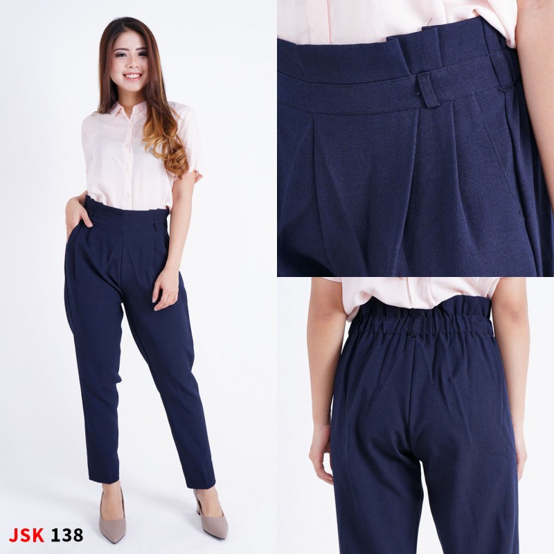 JSK 138 - Celana Kerja Kantor Mango Wanita Model Basic Kain Original - Biru Dongker All Size di Lapak sahara Shop | Bukalapak