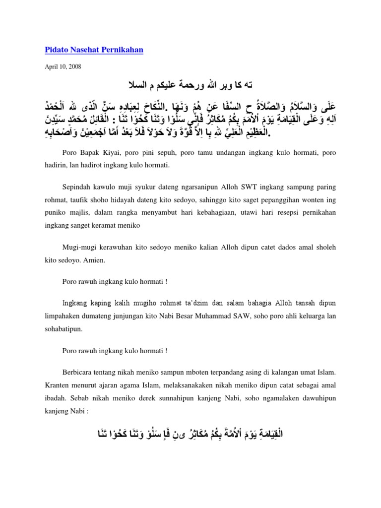Pidato Nasehat Pernikahan