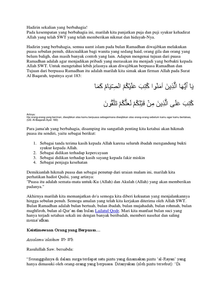 Pidato Bahasa Arab Tentang Puasa Ramadhan | Etika Islam | Perilaku …