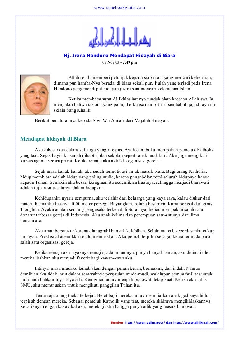 Penuturan kisah Irene Handono kepada tim Majalah Hidayah