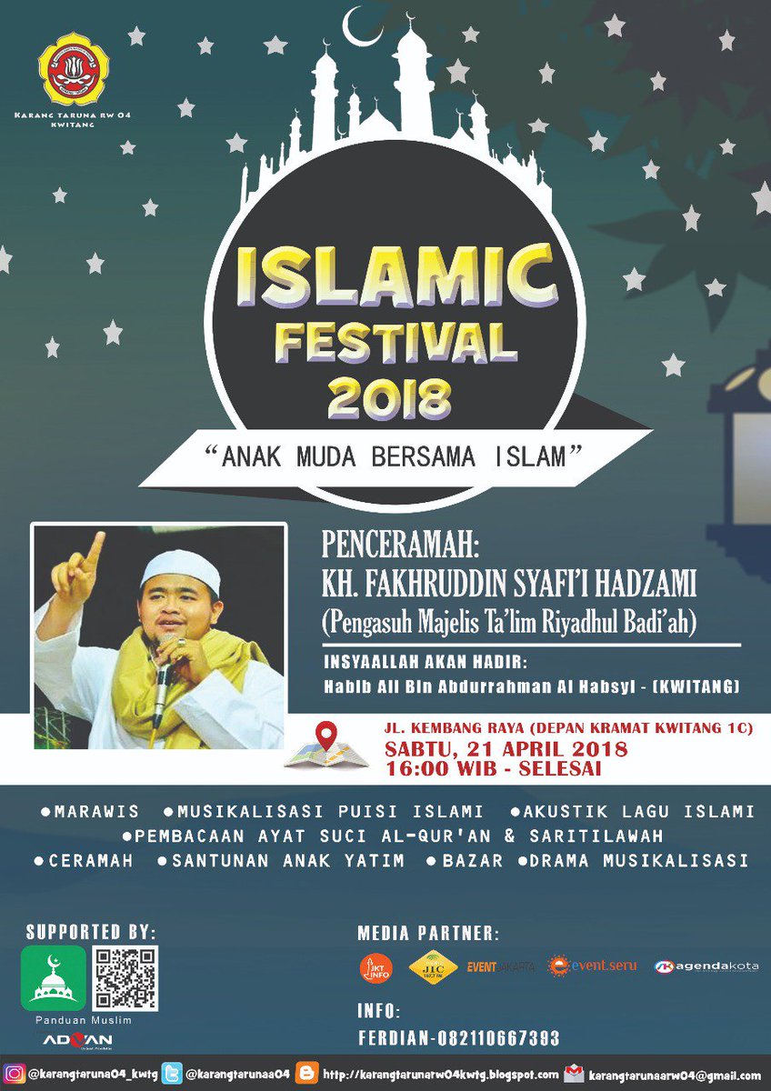 [ ](https://pbs.twimg.com/media/Dat6uQMUwAA1XK5.jpg) Karang Taruna RW 04 "Assalamualaikum Wr Wb, dalam rangka memperingati Isra Miraj Nabi Muhammad SAW 1439 H, kami mengundang teman - teman untuk menghadiri ISLAMIC FESTIVAL 2018. :)… https://t.co/tgg3QYftj4"