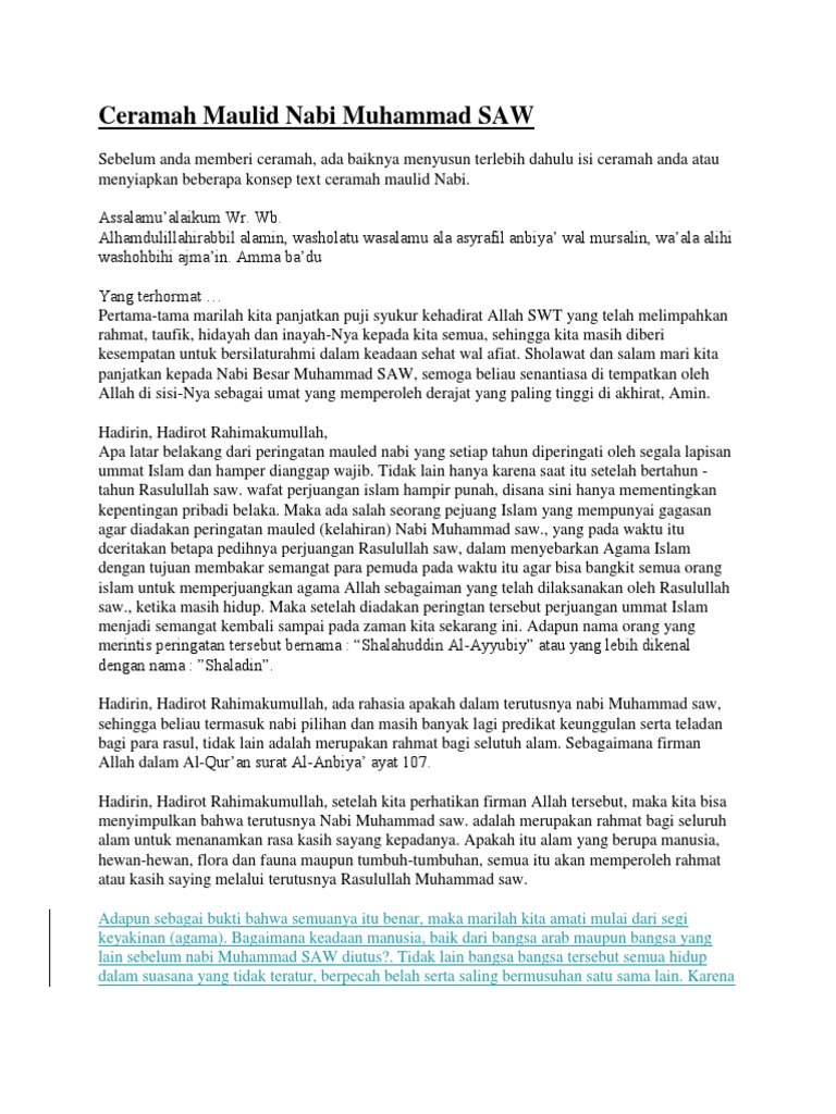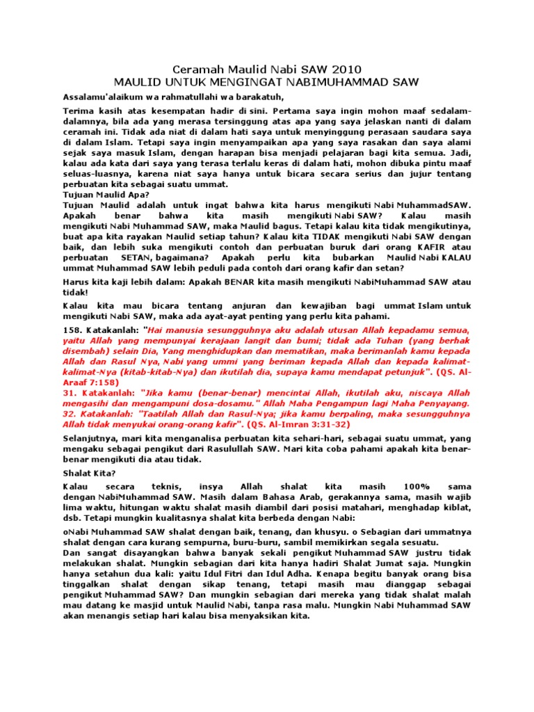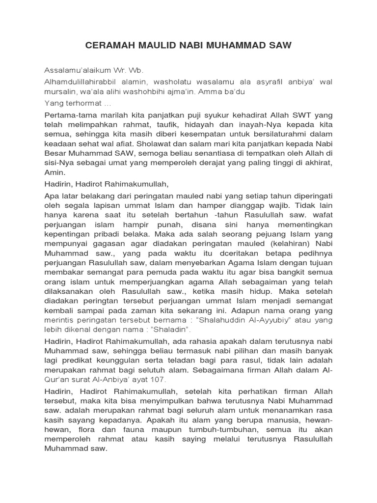 DOC) PIDATO SINGKAT PERINGATAN MAULID NABI MUHAMMAD SAW | daurulang daur - Academia.edu