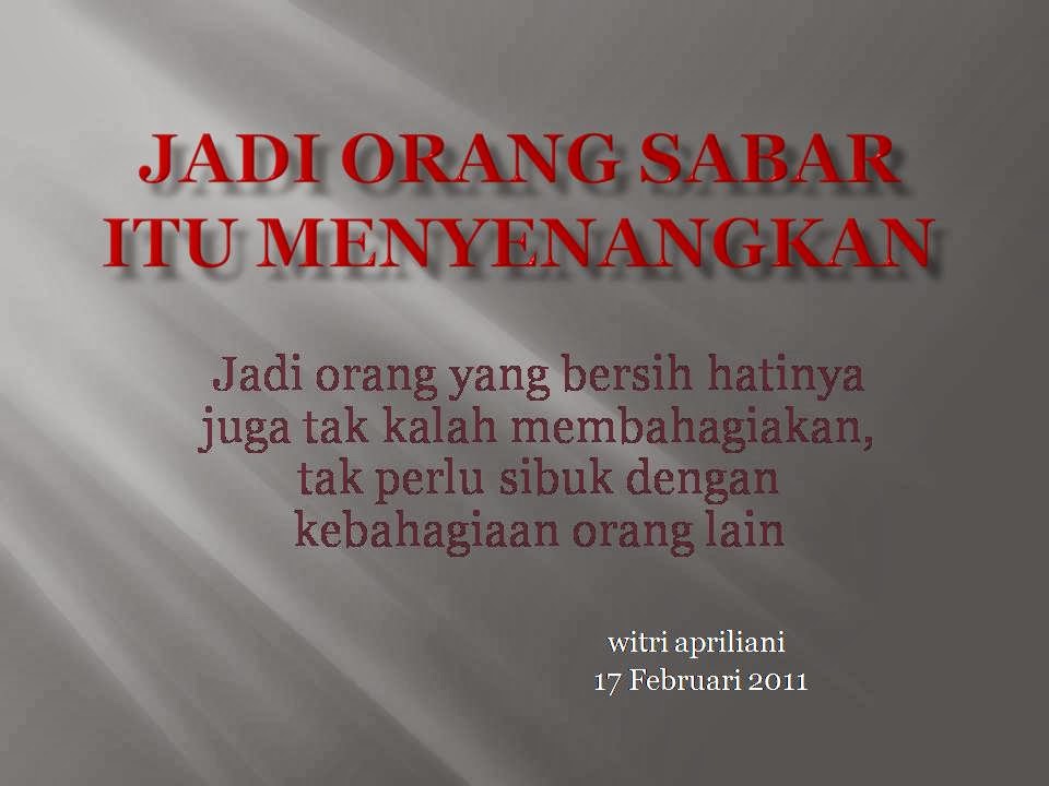 aku dan sesuatu….: Sabar itu indah..