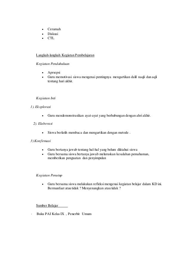 RPP IMAN KEPADA HARI AKHIR