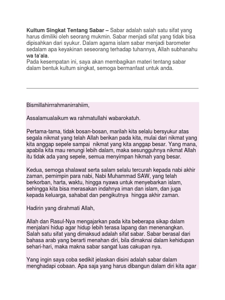 DOC) Ceramah tentang sabar | fitri faqot - Academia.edu