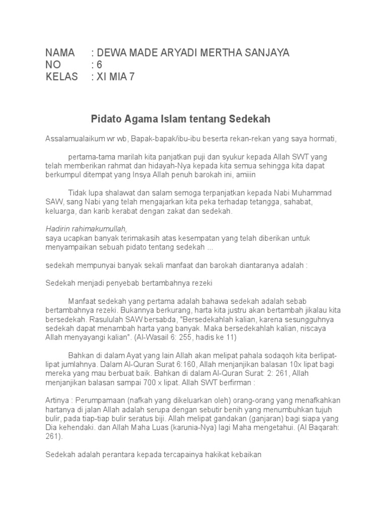 Contoh Pidato Agama Islam Singkat Tentang Sedekah | Kumpulan …