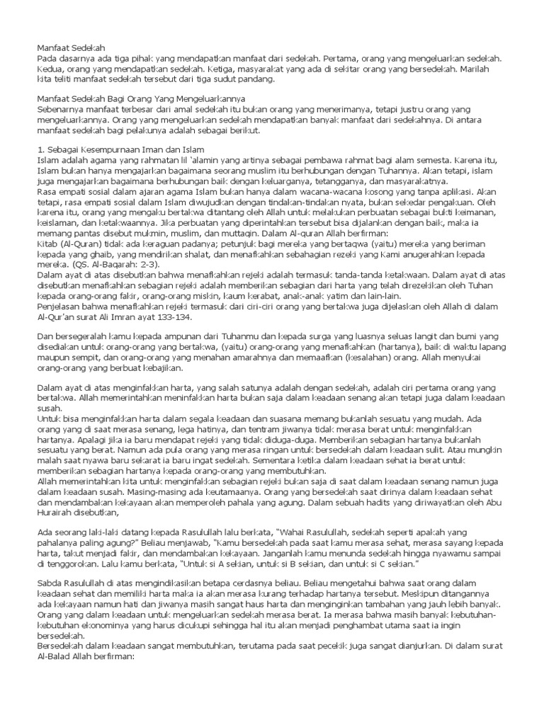 Teks Pidato Keutamaan Infaq Dan Shodaqoh