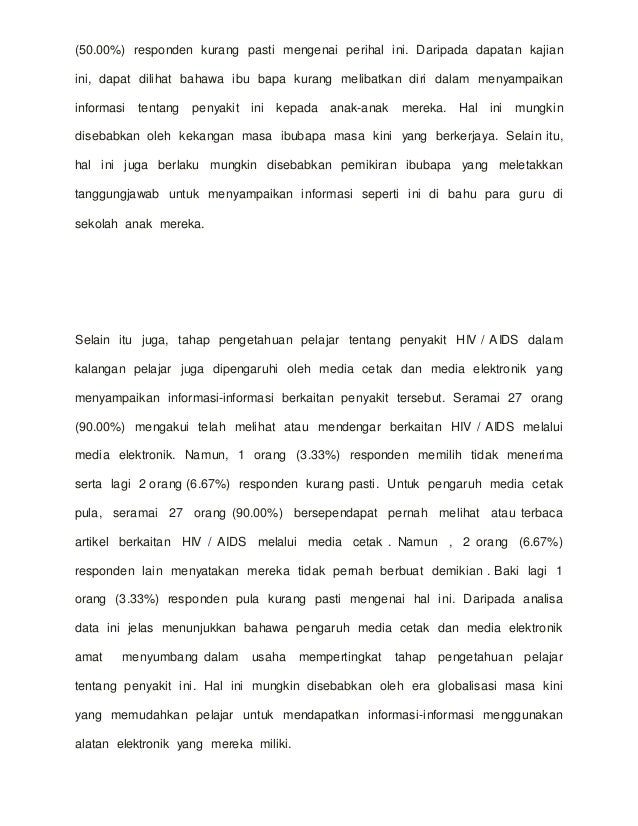 DOC) KAJIAN TAHAP PENGETAHUAN PENYAKIT HIV AIDS DALAM KALANGAN PELAJAR TINGKATAN 5 DI SMK TAMBUN, IPOH PERAK | Muhammad Nasrullah and Muhammad Khushairy bin Md Khairat - Academia.edu