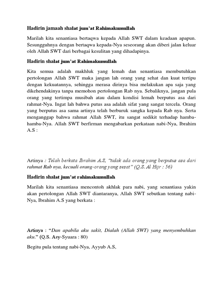 DOC) Pengertian Khutbah Jumat | Muhamad Zainullah - Academia.edu