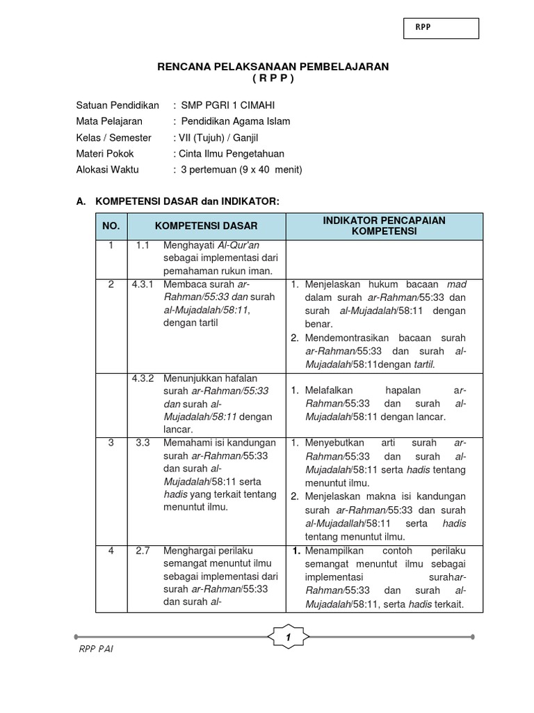 Rencana Pelaksanaan Pembelajaran (RPP)
