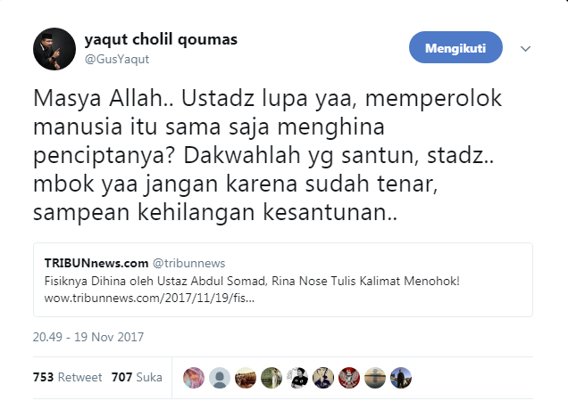 Rina Nose dan Komentar Kontroversial Ustaz Abdul Somad - kumparan.com