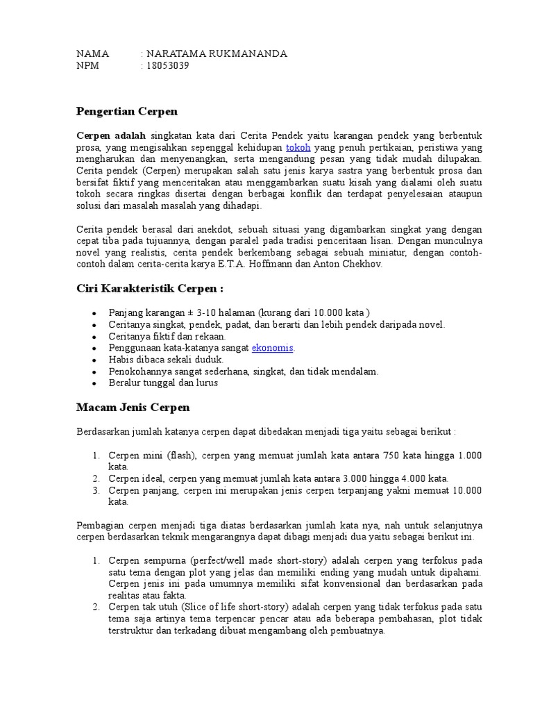 DOC) Mengenal Teks Cerpen: Definisi, Ciri dan Struktur | Nurma syitah - Academia.edu